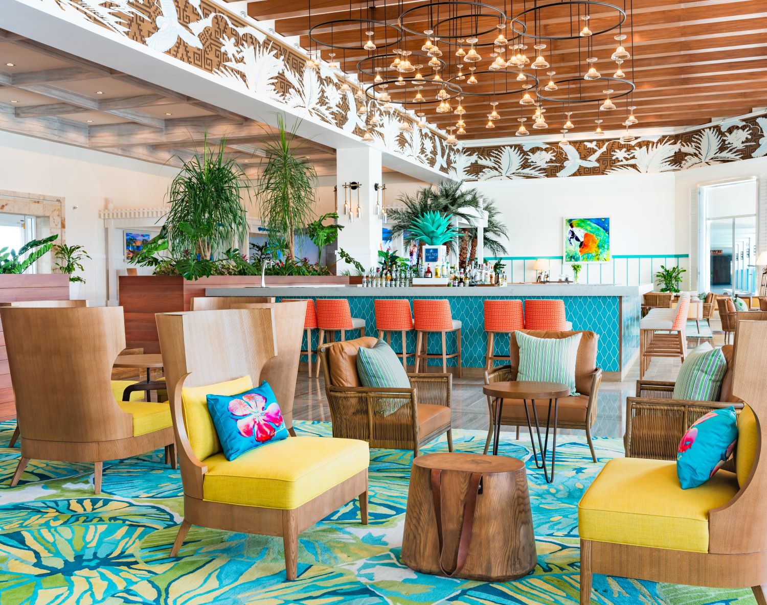 Tequila, Margarita y “bordes con sal”….de eso es de lo que se trata. Salted Rim es una celebración de la planta de agave en México, que después de la destilación, se transforma no sólo en la bebida mexicana más conocida, sino también en el menos conocido Bacanora y en el cada vez más popular Mezcal. Todos son únicos en su producción e historia. Ubicado en el lobby principal con vista a la propiedad, los huéspedes pueden deleitarse con la elegancia del Caribe, con el mejor servicio lounge, auténtica y extensa selección de tequilas, mezcales y bacaronas para crear su margarita favorita, ya sea frozen, mezclada, al igual que otras creaciones más aventureras. Ofrece un menú disponible, aunque nuestros mixólogos están listos para mostrar sus habilidades innovadoras y preparar nuevas mezclas interesantes.